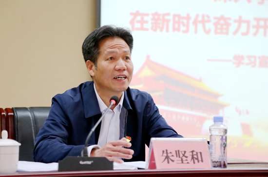 在報告會上,朱堅和書記緊扣黨的十九大報告原文,從“深刻學(xué)習(xí)領(lǐng)會黨的十九大精神”、“以黨的十九大精神為指導(dǎo)奮力開創(chuàng)企業(yè)改革發(fā)展新局面”、“加強組織領(lǐng)導(dǎo)迅速掀起學(xué)習(xí)宣傳貫徹黨的十九大精神熱潮”等三個方面,對黨的十九大精神進行了系統(tǒng)深入的講解,全面闡述了黨的十九大主題、習(xí)近平新時代中國特色社會主義思想、過去5年歷史性成就及變革、中國特色社會主義進入新時代、社會主要矛盾的變化等內(nèi)容,同時圍繞“兩個一百年”奮斗目標(biāo)和建設(shè)“交通強國”目標(biāo)任務(wù)等重點談了學(xué)習(xí)體會,并對集團公司改革發(fā)展重點工作任務(wù)、堅定不移全面從嚴(yán)治黨提出了具體要求。