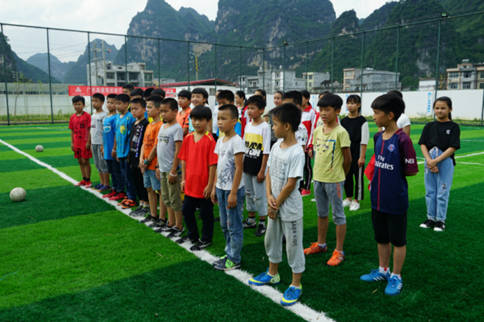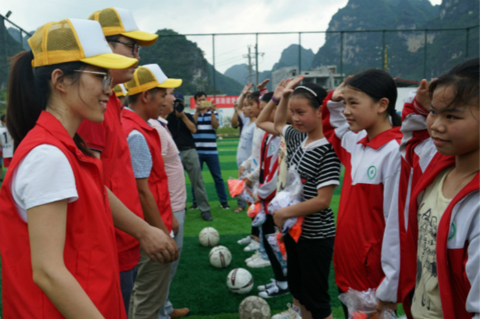 六也鄉(xiāng)中心小學(xué)韋校長對青年志愿者們的幫助表示衷心的感謝,他表示:志愿者們的愛心不僅解決了孩子們的運(yùn)動場所問題,更是在孩子們的心中種下了希望的種子,圓了孩子們的足球夢。六年級的小浩作為球隊隊長為都巴高速志愿者代表送上錦旗,并表示一定不會辜負(fù)大家的愛心與期望,勤奮鍛煉、努力向上,做一個對社會有用的人。
