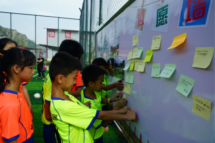 在活動現(xiàn)場,志愿者們還為孩子們設(shè)置了“心愿墻”,孩子們在老師的指引下寫出了埋藏在心里已久的心愿—“我想要一件皇馬隊球衣”、“我想要一本日記本”……一個個質(zhì)樸的心愿都將在志愿者的幫助下得以實(shí)現(xiàn)。